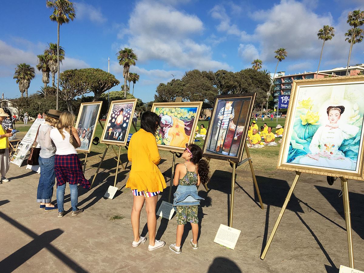 与家人到海边游玩的玛德瑞娜(Madrina)被画作吸引。在了解了法轮功所受迫害后,她表示,感到非常难过。她认为,媒体应该更多地关注法轮功受迫害的事,因为这与道德和良知有关。玛德瑞娜(Madrin)还向自己的女儿解说那些画作,并告诉孩子“在其它国家正有人因信仰而被迫害”。她表示,不会对孩子避讳这些残酷的话题,因为那样对孩子没有帮助。她希望让孩子在了解之后,能去思考如何制止这些悲剧的发生。