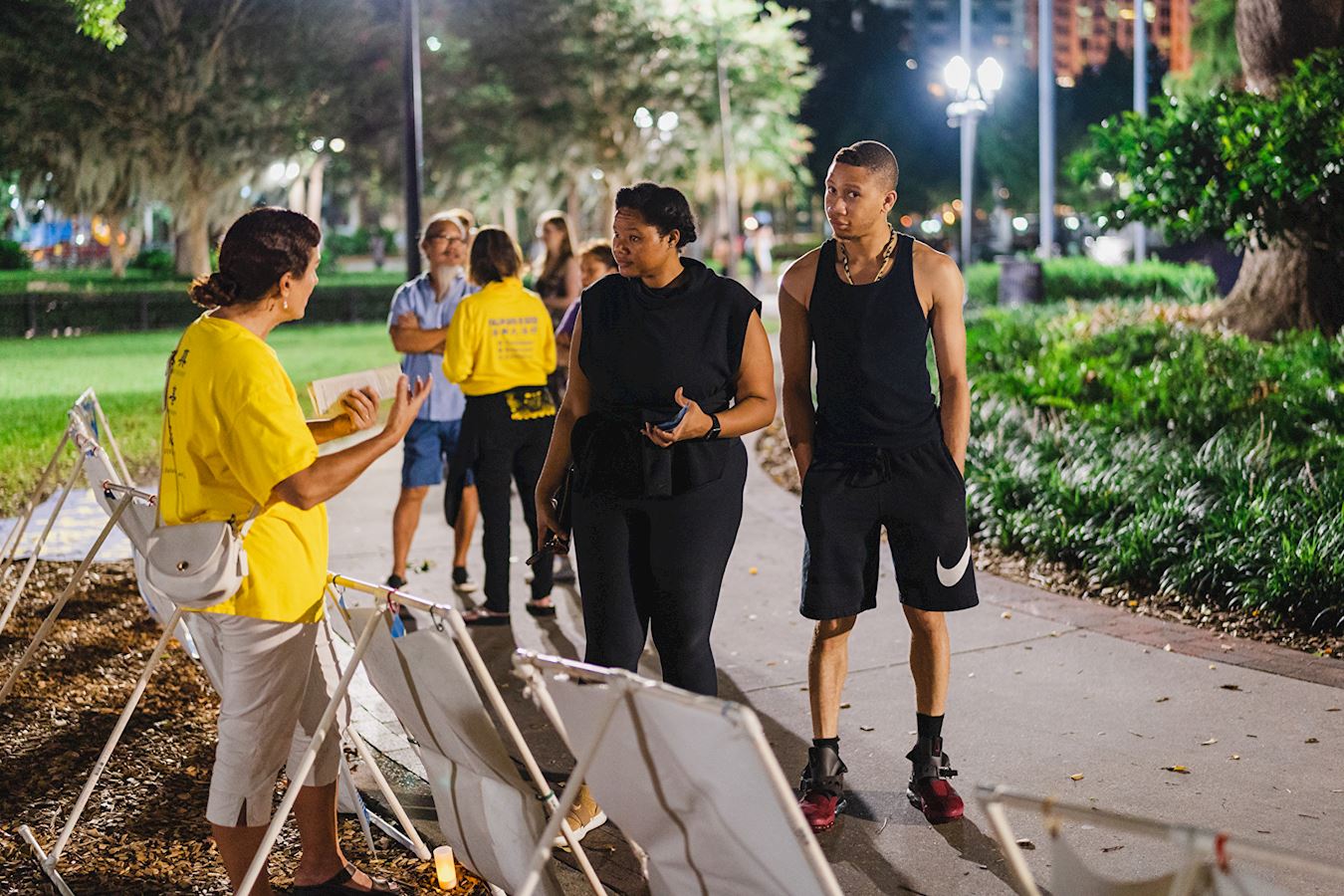 Minh Van博士是奥兰多的一位退休医生。虽然行医一辈子,但自己也免不了落下各种疾病。在修炼法轮功之后,她身上的疾病不翼而飞,而更重要的是,她找到了人生的意义。她说:“每年的七月二十日左右,我们佛罗里达中部地区的学员都会在伊奥拉湖畔举办烛光夜悼活动,悼念那些因为修炼法轮功而被中共迫害失去生命的同修。同时,我们也希望通过这个活动让更多的人了解法轮功在中国被迫害的真相。我们希望通过口口相传的形式让更多人知道中国仍在发生的可怕的迫害,帮助尽快结束迫害。”
