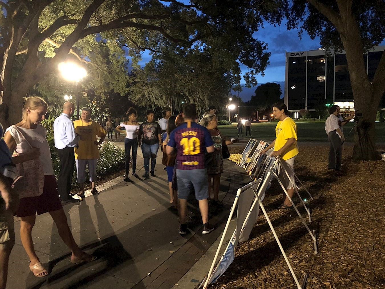 在反迫害二十周年之际,佛罗里达法轮大法学会主席魏德表示,“在中共迫害法轮功这二十年里,至少四千多名已知的法轮功学员被迫害致死。今天我们聚集在这里,纪念这些因坚持‘真善忍’信仰而失去生命的法轮功学员。同时,让更多世人了解法轮功真相,知道中共的迫害仍在继续。”