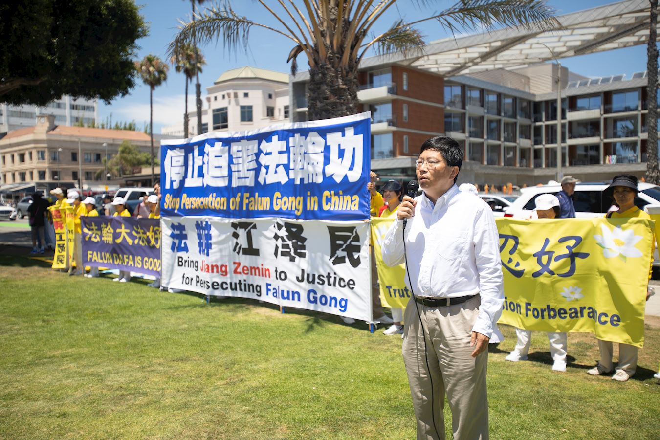 洛杉矶法轮大法学会发言人吴英年表示,自一九九二年法轮功创始人李洪志先生在中国将法轮功传出后,无数中国人受益,逐渐弘传到世界各地,但前中共党魁江泽民却为了个人妒嫉与私欲,在一九九九年七月二十日开始非法镇压法轮功,迫害法轮功学员至今;二十年来法轮功学员始终秉持着“真、善、忍”的原则,和平理性的向各界说明真相,也有越来越多人认同、支持法轮功。