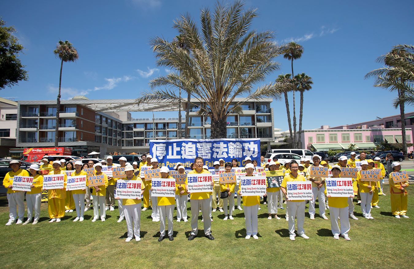 为了呼吁社会各界帮助制止迫害,二零一九年七月二十一日,洛杉矶法轮功学员在著名旅游景点——圣莫妮卡海滩公园举办了“反迫害二十周年”系列活动。上午集体炼功讲真相,下午举行集会和真相长城,让更多人们了解法轮功的真相。南加州社区多位人权领袖,有的致支持信,有的前来参加集会,表达对法轮功学员的支持。