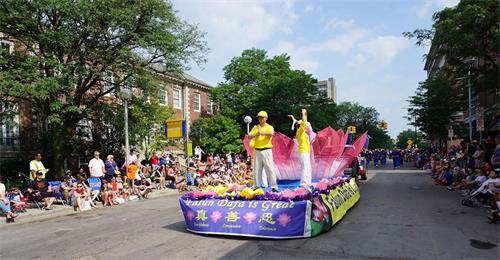 '图1~4:2019年7月4日,来自密西根州、俄亥俄州和加拿大温莎市的部份法轮功学员以花车和唐鼓队参加安娜堡国庆日游行,亮丽的色彩、平和的功法演示和学员们的精神面貌,让沿途的观众耳目一新'