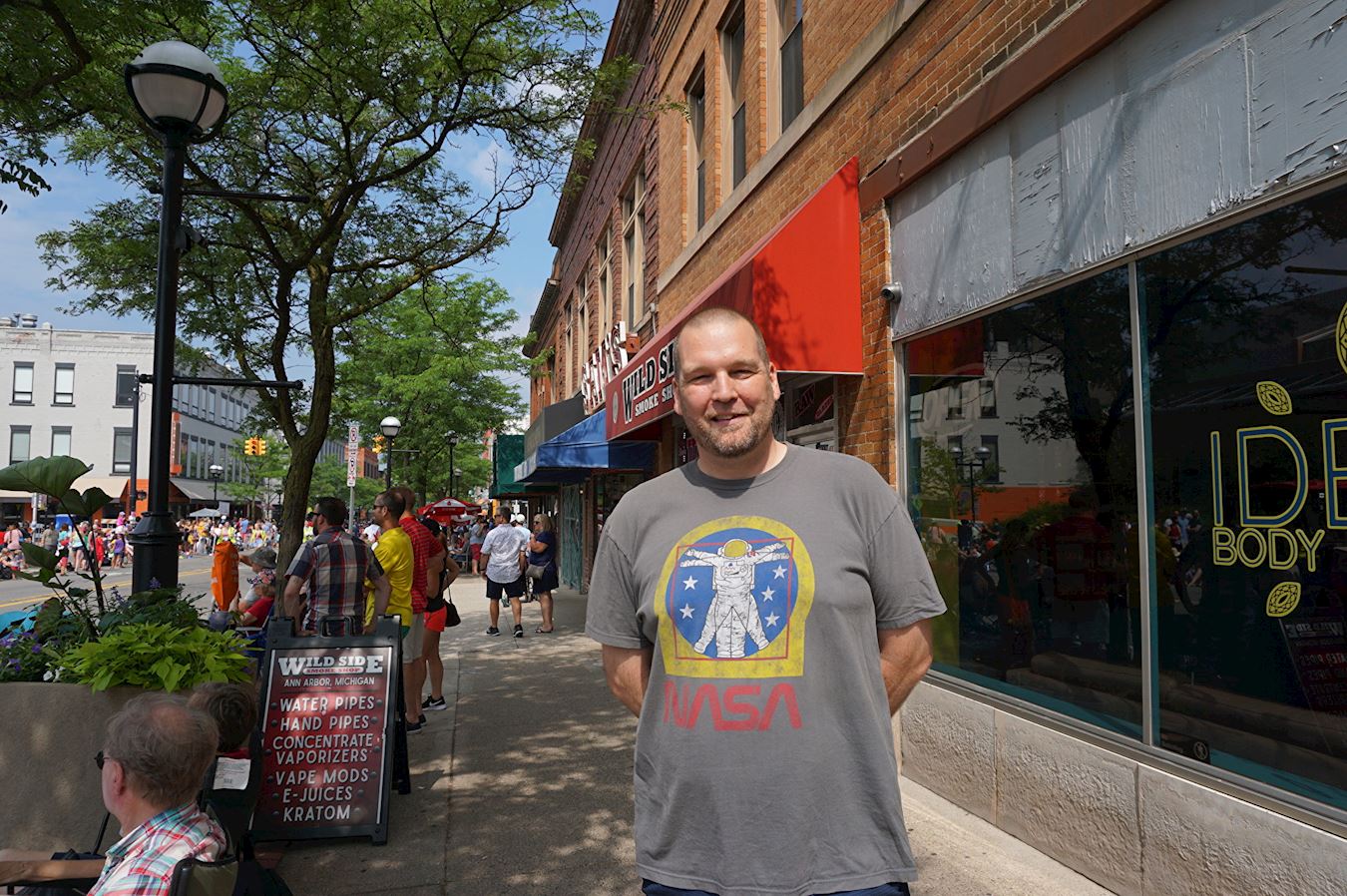 图12:乔·迈尔斯(Joe Myers) 在安娜堡的一家医疗保健研究公司工作。他说:“我也为法轮大法花车鼓掌,颜色很漂亮。”