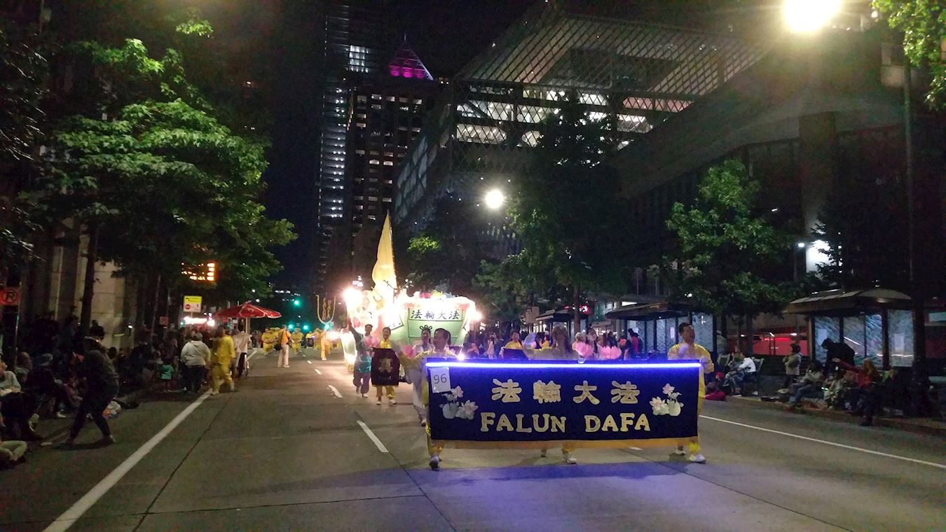 '图1~5:法轮功学员参加第七十届西雅图“海洋节炬光游行”(Seafair Torchlight Parade)'