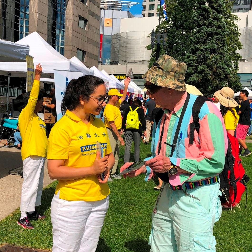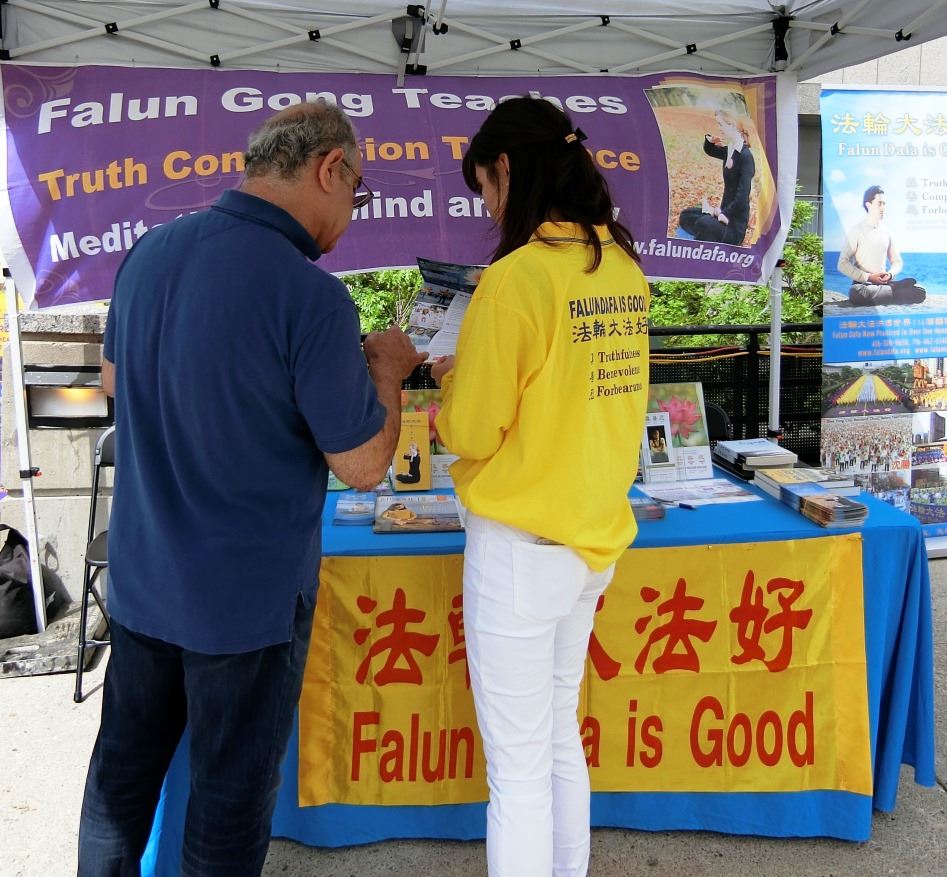 一位从印度来加拿大旅行的老先生走到展位前说:“我知道法轮大法,我在印度就听说了这一切,我能为你们做点什么?”在签过给加拿大政府的呼吁帮助制止迫害的明信片后,他表示,非常高兴能有机会为法轮大法以及在中国遭受迫害的法轮功学员尽一份心力。