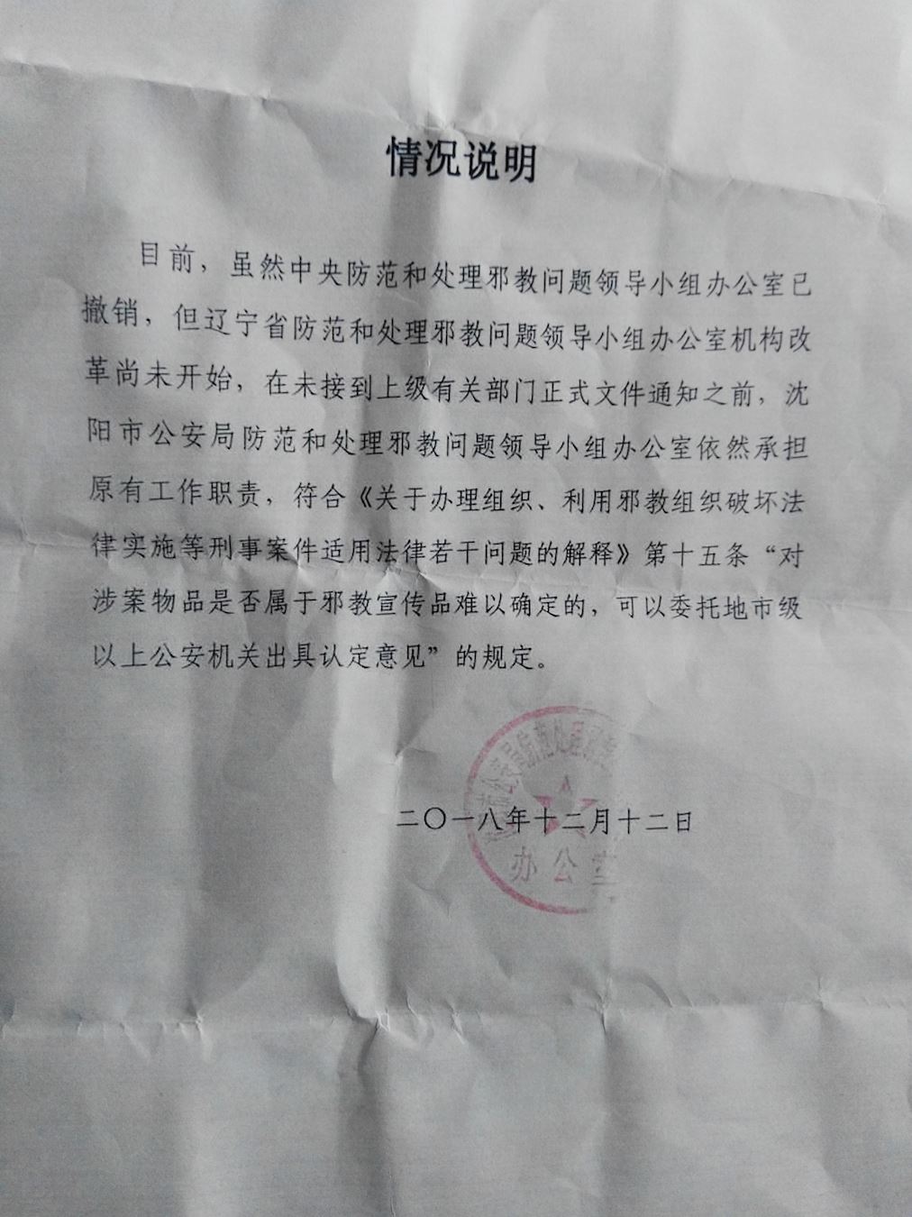 一份辽宁省610的密件显示辽宁省610仍然在运作。