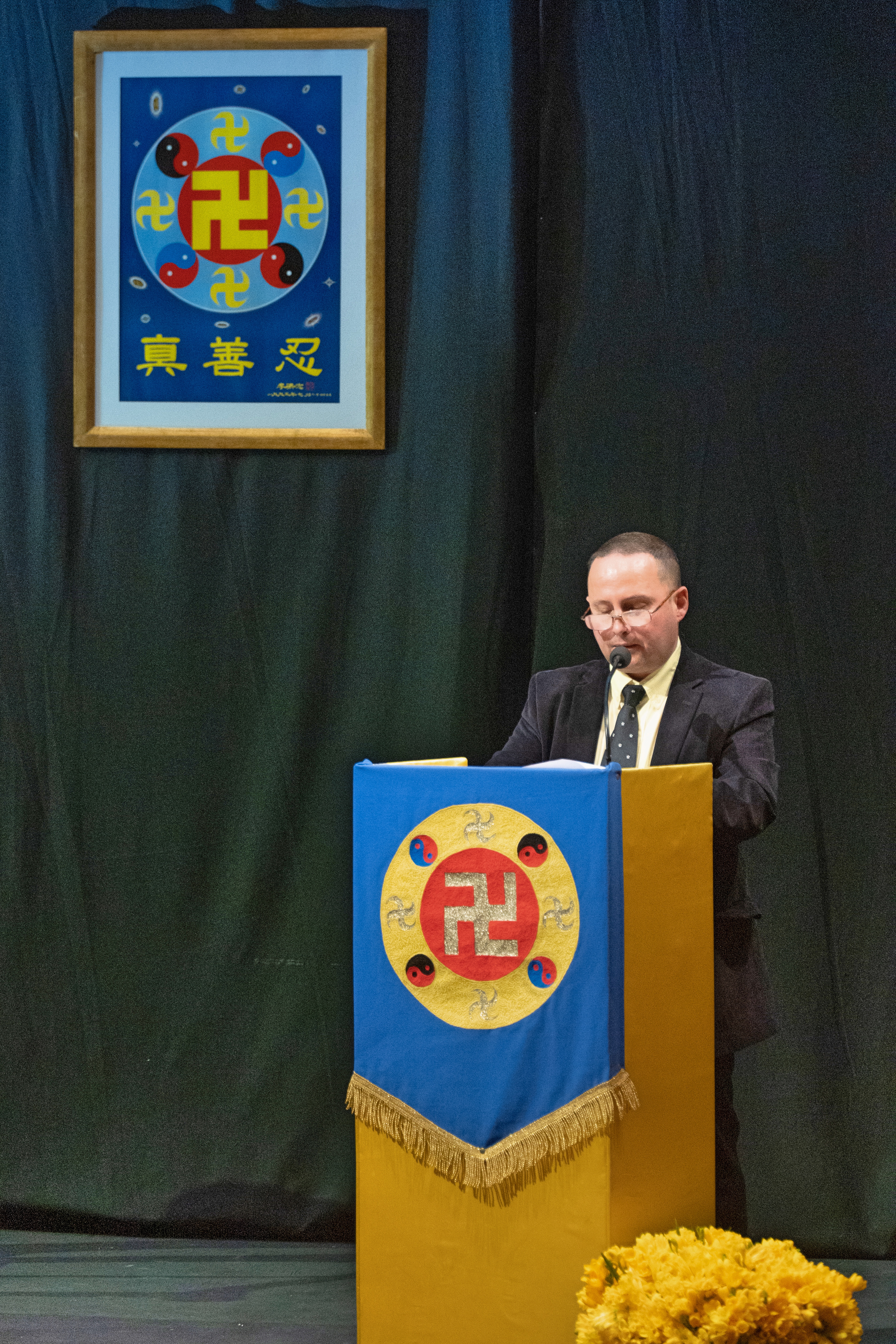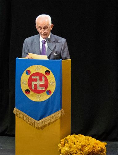 慈悲伟大的师尊给法会致词。在致词中,师尊叮咛学员:“大法修炼与其它宗教和修炼是不同的,因为大法弟子是有使命的,是在个人走向圆满的过程中要救度众生的。”[1]并在致词最后又嘱咐大家:“希望大家多学法,多讲真相,走好每个人的修炼之路。”[1]