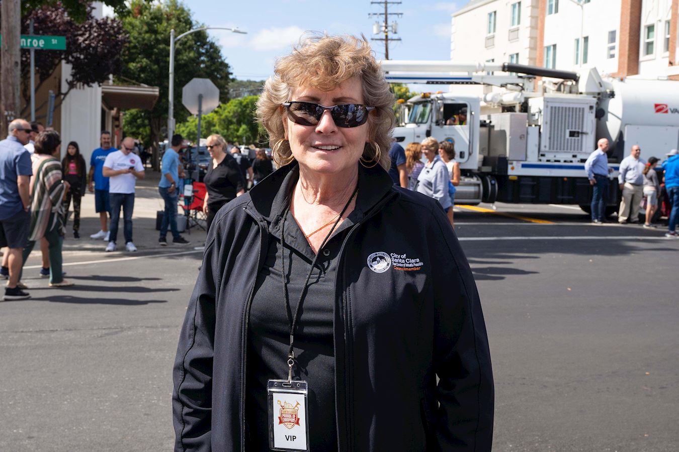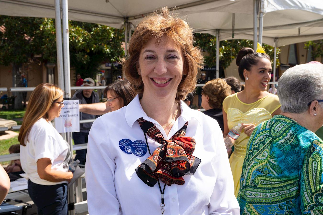 圣塔克拉拉居民希拉·海斯(Sheila Hice)看到天国乐团过来,就高兴地挥手。她说:“你们太优美了,我在旧金山的公园看到过法轮大法。法轮功的乐团非常棒,训练有素,我非常高兴看到你们来这里,与我们分享。我认为法轮功非常好,真善忍非常重要。”