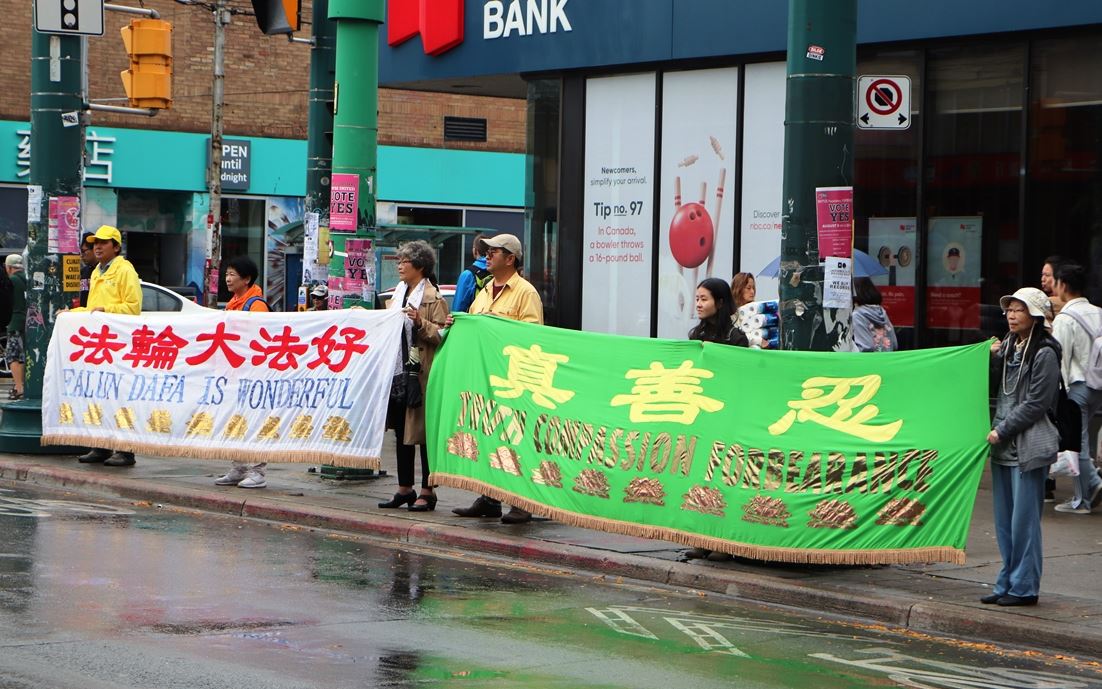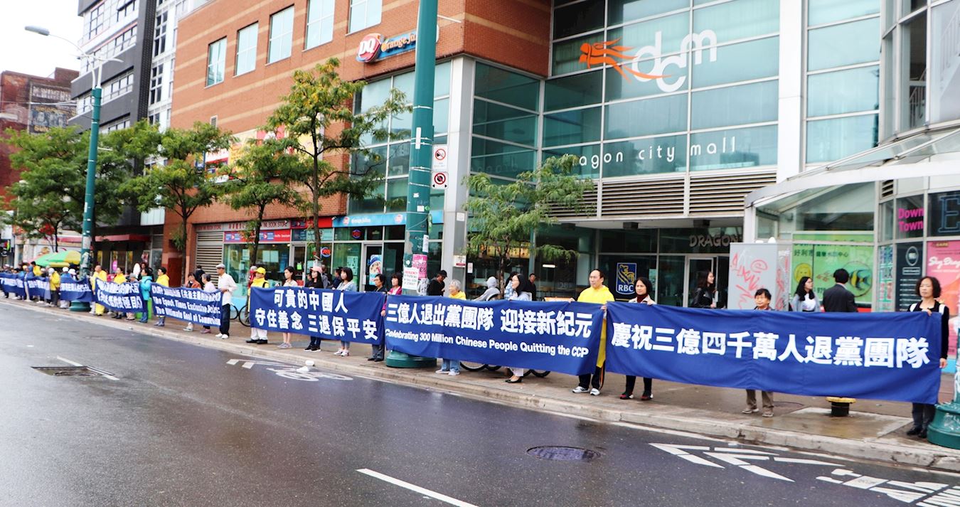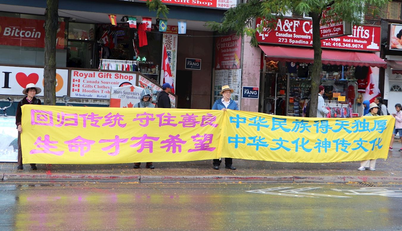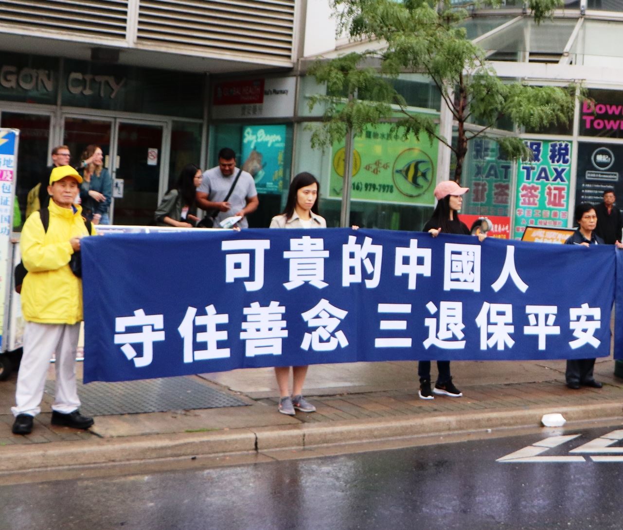 ![]() 图1~5:二零一九年九月二十八日下午,加拿大多伦多部份法轮功学员为声援三亿四千万中国勇士退出中共邪党组织,在中区唐人街拉起真相横幅筑起“勇气长城”。 |