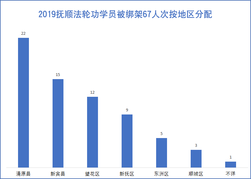 辽宁省抚顺市辖顺城、新抚、望花、东洲四个市辖区,抚顺县以及新宾、清原两个满族自治县。据明慧网不完全统计,二零一九年抚顺四个区域二个县(不包括抚顺县)法轮功学员,遭受中共警察抓捕迫害67人次,其中释放38人次;非法判刑18人;非法庭审一人;非法批捕五人被;非法刑拘二人;非法行政拘留一人,12人被非法关押情况不详。已知20人被勒索人民币至少十万八千五百一十元。截至年底,还有55人在监狱和看守所被非法关押中。
