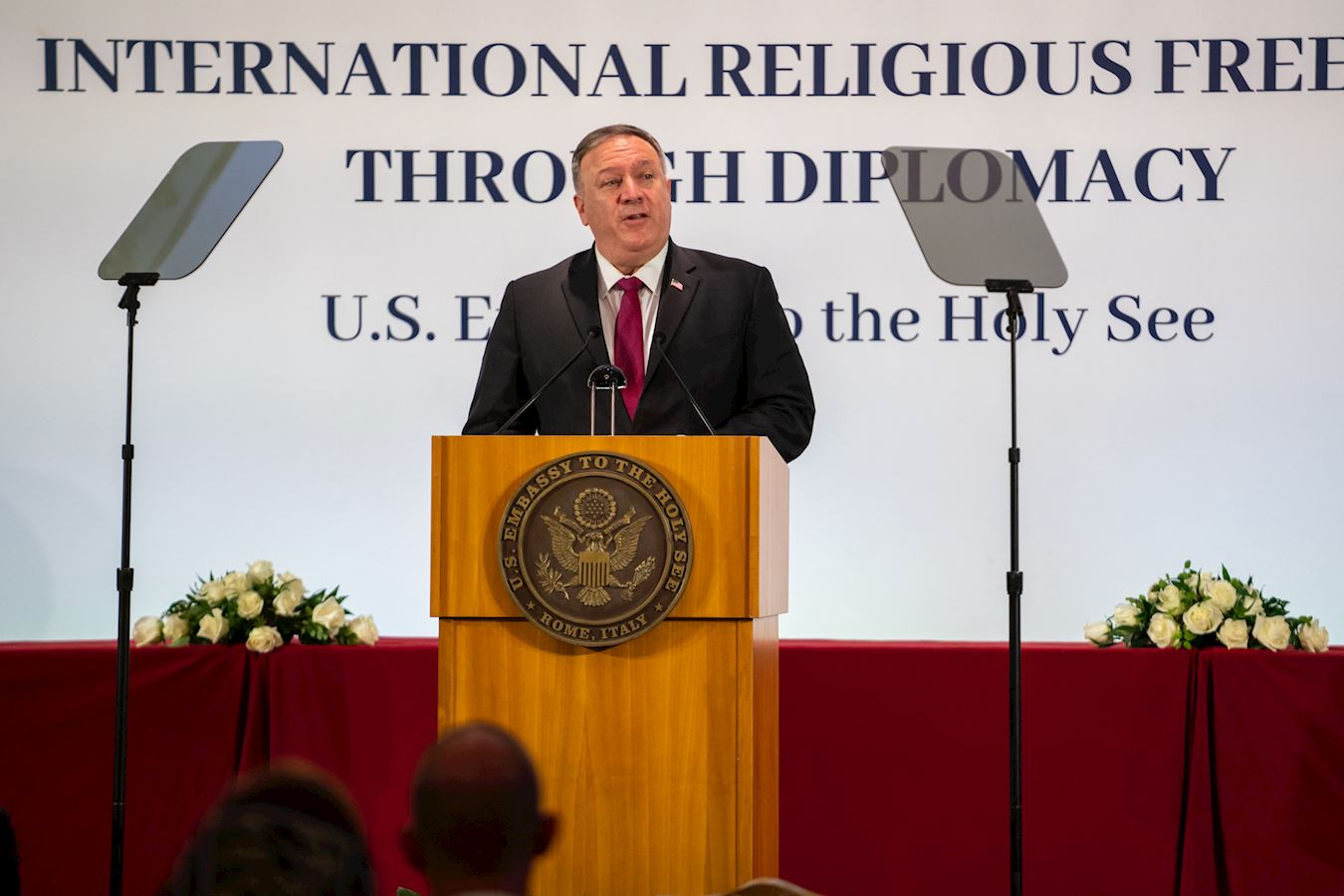 访问梵蒂冈却没能见到教宗,蓬佩奥干脆在美国驻教廷大使馆主办的研讨会上,当着教廷外长盖拉格(Paul Gallagher)与教廷国务院长帕洛林(Pietro Parolin)的面,大声向教廷疾呼,面对中国共产党应该要有“即使殉道也不屈服”的精神,坚定捍卫宗教自由与人性尊严。