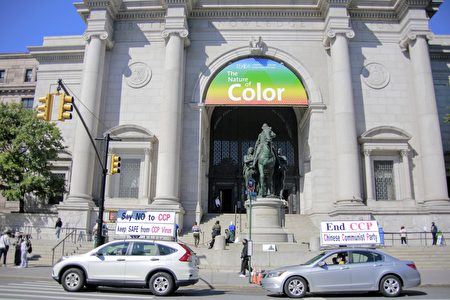 ![]() 图2:“解体中共”真相车队经过美国自然历史博物馆 |