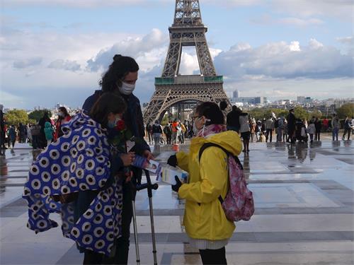 【明慧网二零二零年十月十六日】(明慧记者周文英报道)金秋时节,为帮助人们了解法轮功真相,法国多地的法轮功学员在自己居住的地区,向法国各族裔人民和游人传送法轮功的信息、三退大潮的形势,帮助当地华人退出中共党、团、队组织(简称三退),并告诉他们保平安的九字真言“法轮大法好,真善忍好”。