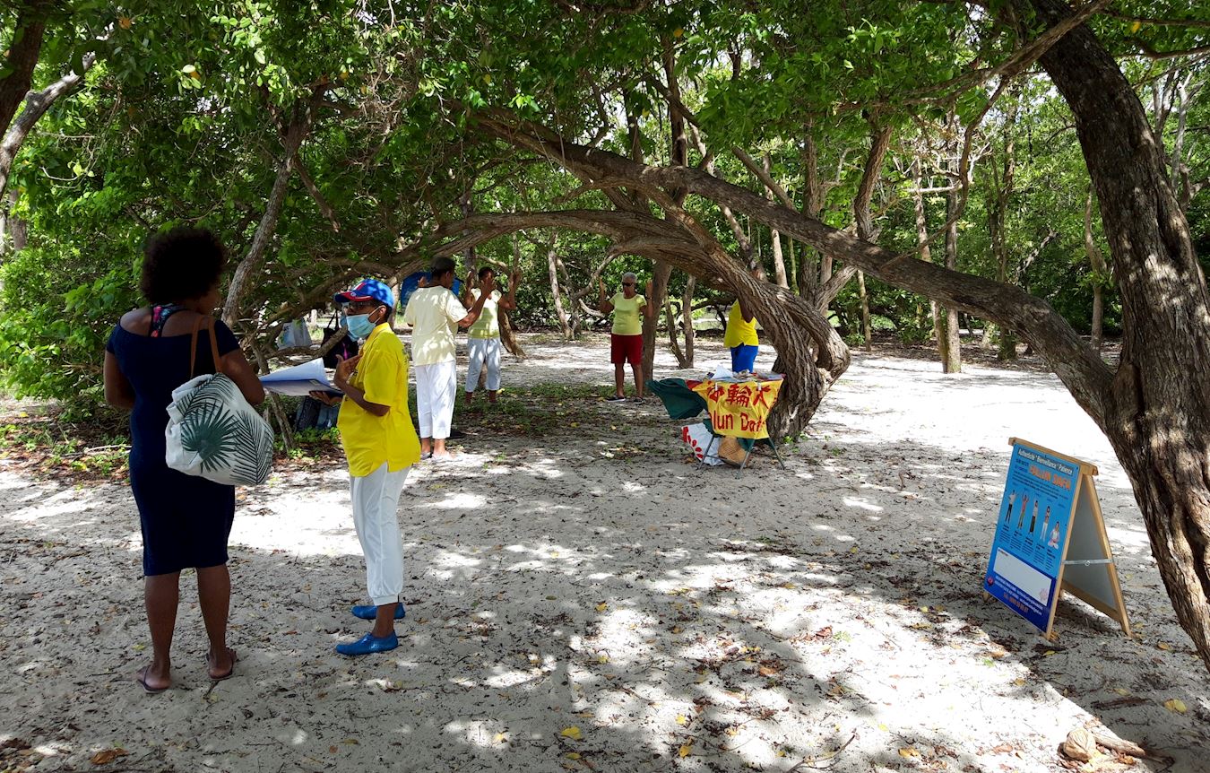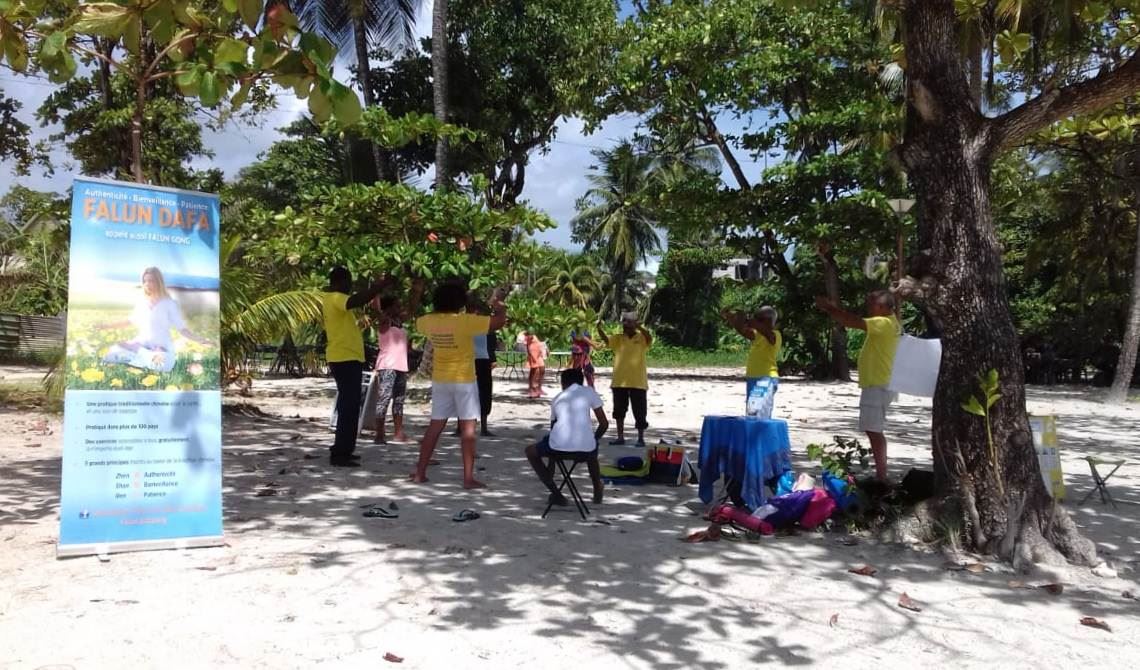 图8:在巴斯德雷(Basse-Terre),圣罗丝(Sainte-Rose )城的阿芒迪尔(Amandiers )海滩,每星期六的九点,都有法轮功炼功活动。