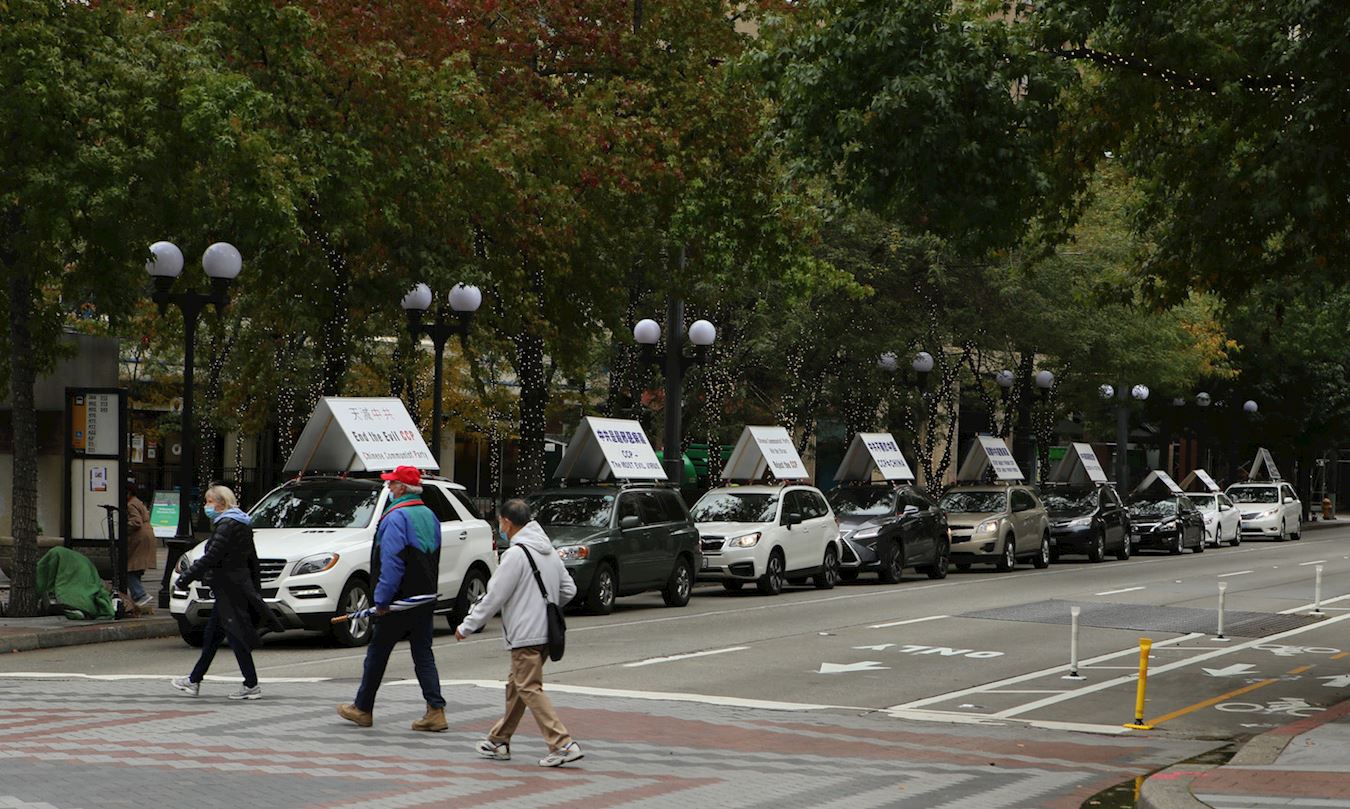 ![]() 图4:真相横幅展示在西雅图市中心街道 |