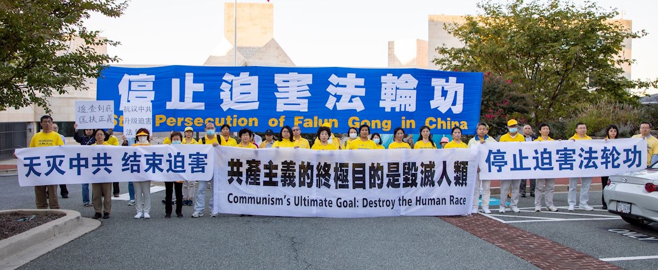 ![]() 图1:二零二零年九月三十日傍晚,美国首都华盛顿的部份法轮功学员在中共驻美大使馆前集会,要求停止迫害法轮功,声援三亿六千多万中国人退出共产党及其相关组织。 |