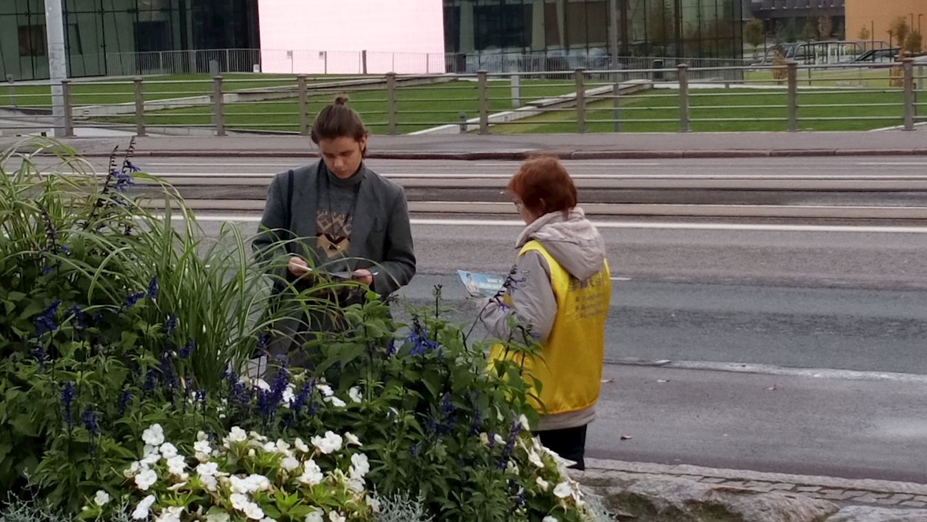 伊琳娜(Irina)是一名企业家。她自己打开放在草坪边上的征签本签字。她告诉学员说:了解法轮功被迫害的事情。一个极权国家不可以这样对待自己的民众。更多的政府与媒体需要为你们发声。