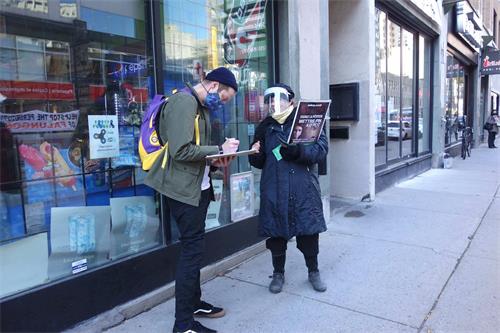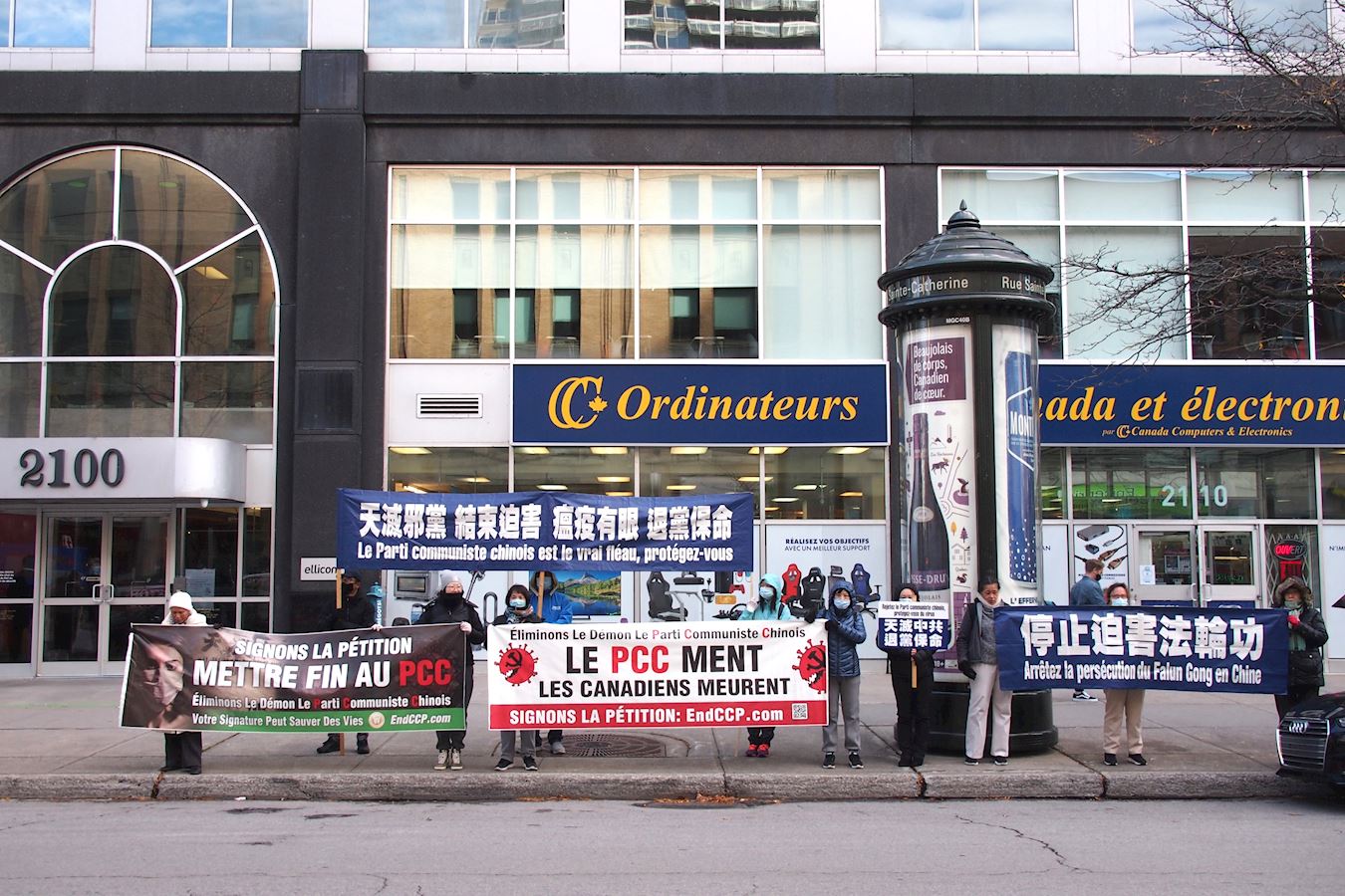 一场中共病毒(武汉肺炎)瘟疫让越来越多的人们清醒,人们对中共危害全世界正在形成共识。二零二零年十月二十七日,魁北克法轮功学员在蒙特利尔中领馆前,揭露中共迫害法轮功的罪行,以及“终结中共恶魔”的征签活动。法轮功学员的活动获得当地民众支持和响应,人们都认可:中共的存在对全世界的善良民众都是威胁,解体中共是当务之急。