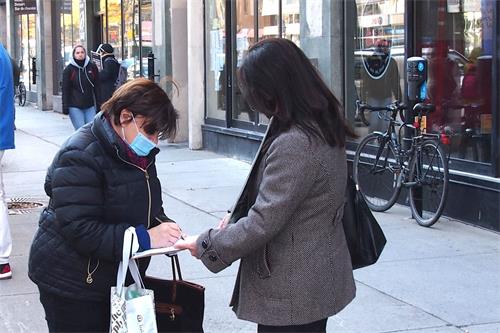 ![]() 图5~8:明白真相的人们驻足签名支持“终结中共恶魔”的征签 |