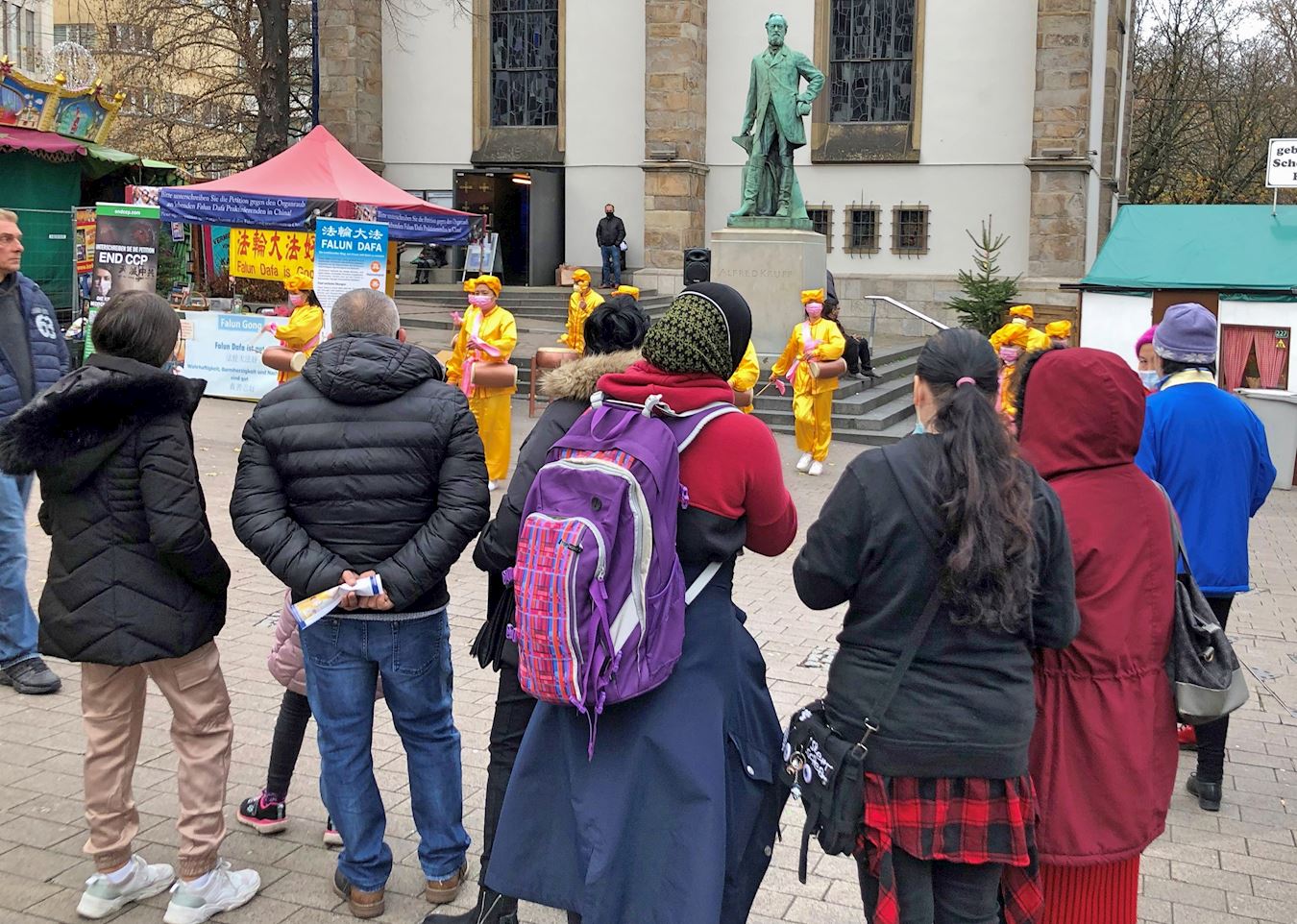 这不是法轮功学员第一次来埃森市传播法轮功的真相,与以往不同的是,这次除了法轮功功法演示以外,还有腰鼓表演。法轮功学员的腰鼓表演,吸引了不少人驻足观看。在演示功法时,一位法轮功学员同时通过扩音器向现场民众介绍什么是法轮功,中共对法轮功的迫害及中共的邪恶本质。也有的法轮功学员给围观的人们讲真相征签。 看征签表格上的说明,很多民众立即签名。还有不少民众看到“天灭中共”的展板上的QR码,立刻用手机访问“解体中共恶魔”的网站了解更多。