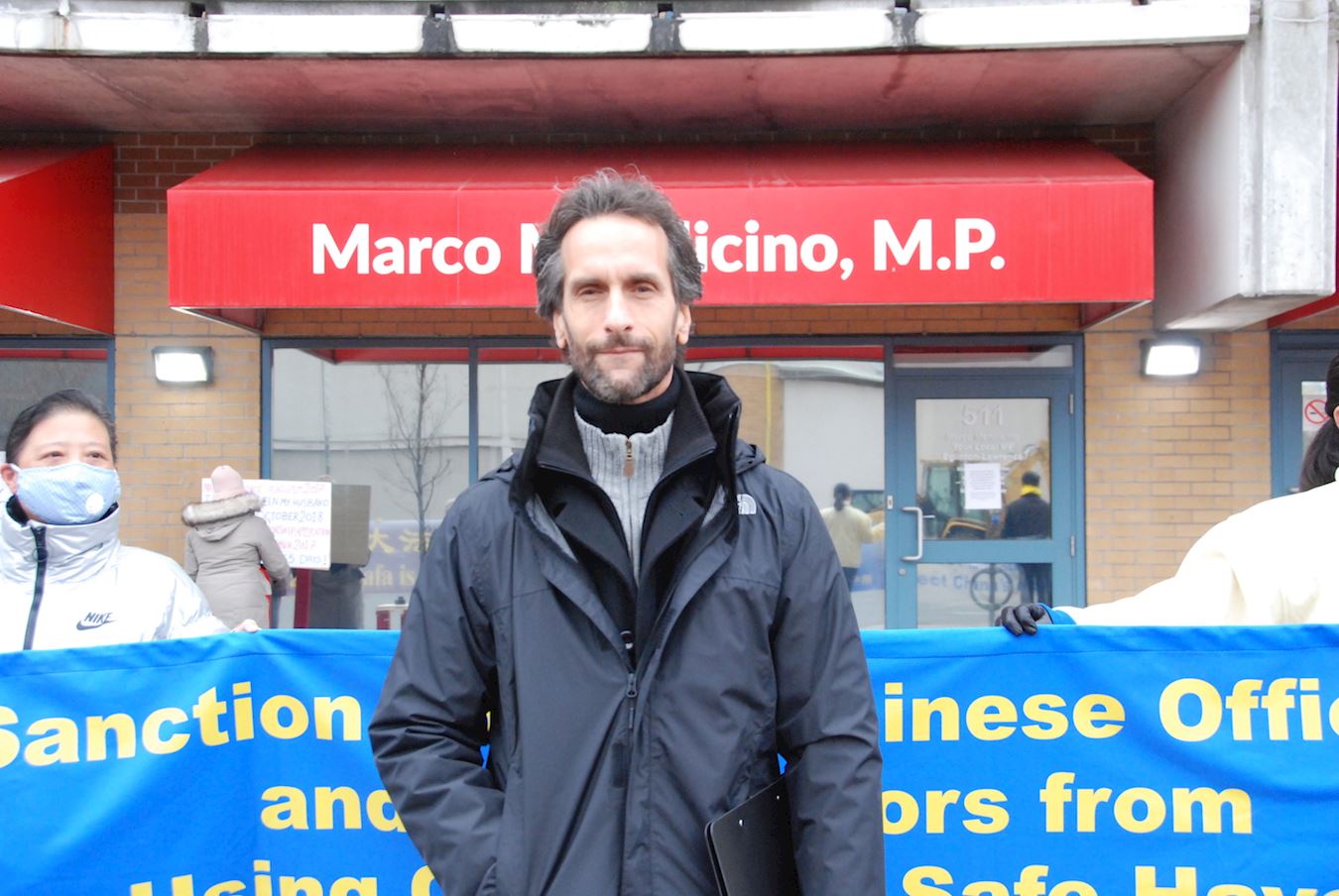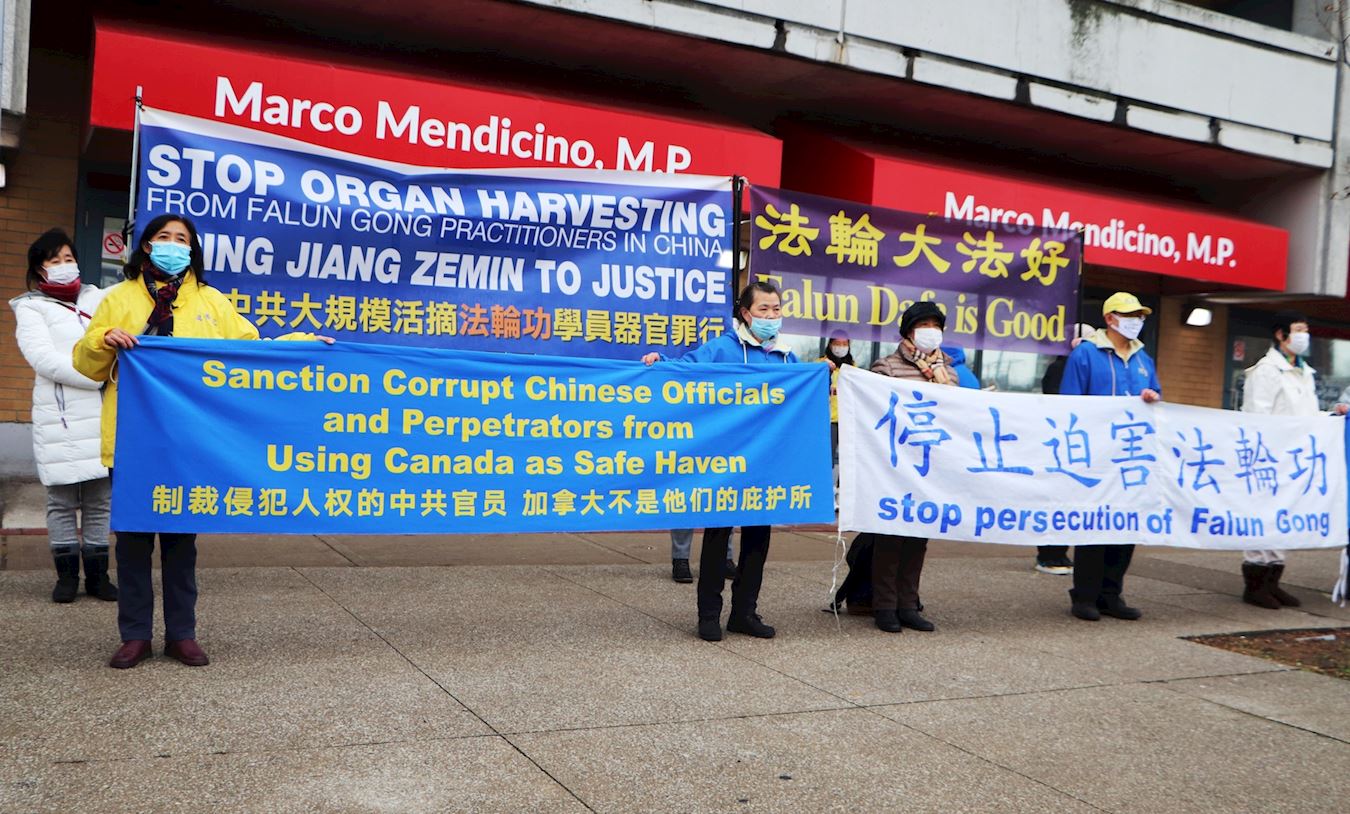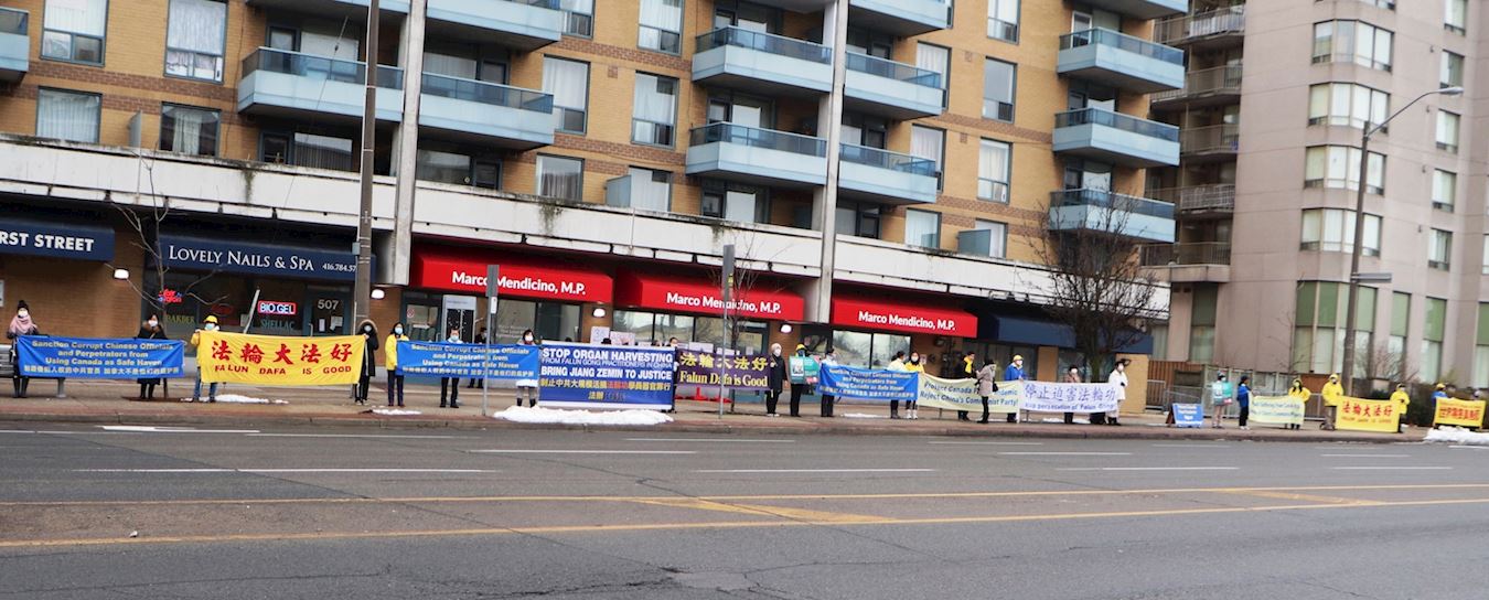![]() 图1~3:二零二零年十一月二十五日中午一点,多伦多部份法轮功学员在加拿大移民部长马可·门迪奇诺(Marco Mendicino)的选区办公室前举行请愿活动,呼吁加拿大政府制裁迫害法轮功的中共官员。 |