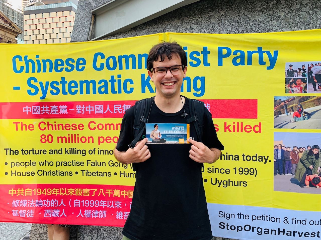来自巴西的青年马修斯(Matheus)远远看到法轮功的讲真相活动就对法轮功学员露出善意的微笑,在和一位来自中国大陆的法轮功学员深入交流后,他说:“任何人都不可以容忍(中共)活摘法轮功学员器官(以下简称:“活摘”)的罪行!这真是太可怕了!(中共)迫害这些和平打坐的人真是令人难以想象,希望你们的国家能更换政府。”