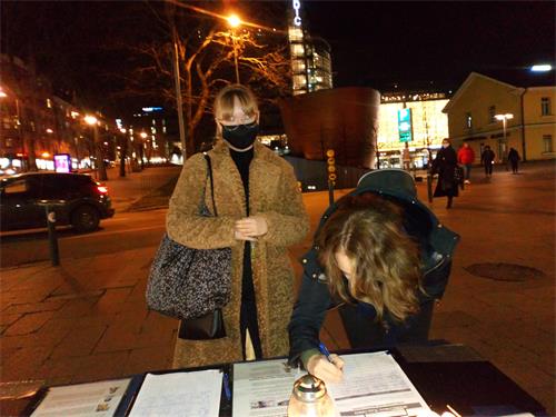 越南裔芬兰人尼(Ni)看到活动后与主动要来签名。她告诉学员:“我知道你们的遭遇。我要为你们签名。”