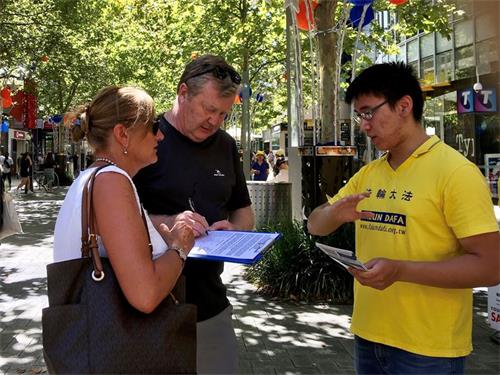 ![]() 图1~4:法轮功学员在莫里街购物中心前讲真相,呼吁民众签名反迫害。 |