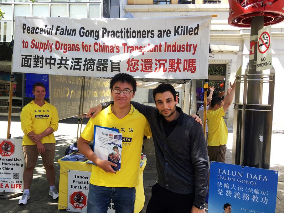 电气技师基努(Keanu)说:“三年前在弗雷曼特尔(frementle)真相点,我得知法轮功被迫害是因为法轮功的学员人数已超过共产党员的人数,中共活摘关在监狱的法轮功学员的器官,这是恐怖电影的情节发生在真实生活中!”他认为,过去因为经济因素很多政府不愿意发声,他说:“我觉得全世界各个国家应该联合起来抵制中共的恶行,这样这件事情才能改善。”