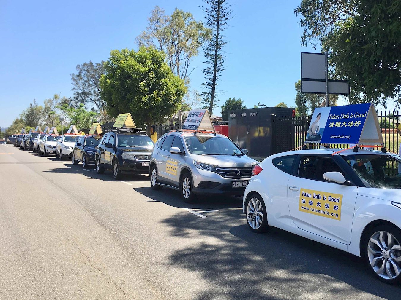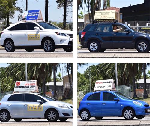 由二十五辆分别载着“法轮大法好”、“三退保平安,瘟疫不沾边”、“天灭中共”、“中共不是中国”、“终结中共(End CCP)”、“中共是最邪恶的病毒,祸害全世界”、“对中共说不(Say No to CCP )”、“中共撒谎,澳洲民众死亡(CCP Lied,Australians Died)”等十七种中英文真相标语的特殊车队浩浩荡荡行驶在首府布里斯班的交通要道上广传真相,他们所到之处获得不少过往车辆赞同的喇叭声:有的民众在路边拍视频记录的;有的民众向车里的法轮功学员挥手致意的;还有一位中国留学生在市中心看到真相车队经过时高声喊:“打倒中共!(Take down CCP!)”