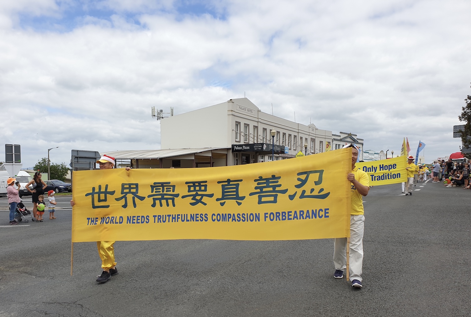 二零二零年十二月十九日,蒂阿洛哈举行了一年一度的圣诞游行,今年是法轮功团体第一次参加当地的活动。他们的腰鼓队和舞龙队是这次游行唯一被邀请的华人团体,他们精彩的表演获得了小镇居民的赞誉。接到介绍大法的单张和印有“法轮大法好”及“真、善、忍”的小莲花,人们都欣喜不已。法轮功学员的方阵打出“法轮大法好”、“世界需要真善忍”、“人类的唯一希望是回归传统”等横幅,把法轮大法的美好传递到小镇。