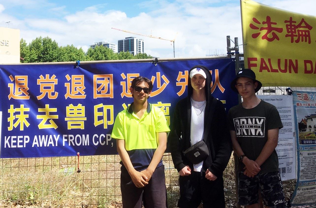 年轻人皮特·克林基(Pete Clancey )与两位朋友来到唐人街,他们很乐意地在征签表上签名,他们表示:中国(中共)若早日公布疫情,病毒将不会这么大面积的传播世界各地。中共一党专政,人民没有自由。言论自由是普世价值,很幸运澳洲有这些,可惜中国没有,原来很想去中国看看,中国的山水很美。但香港国安法实施后让人不敢去中国旅行。