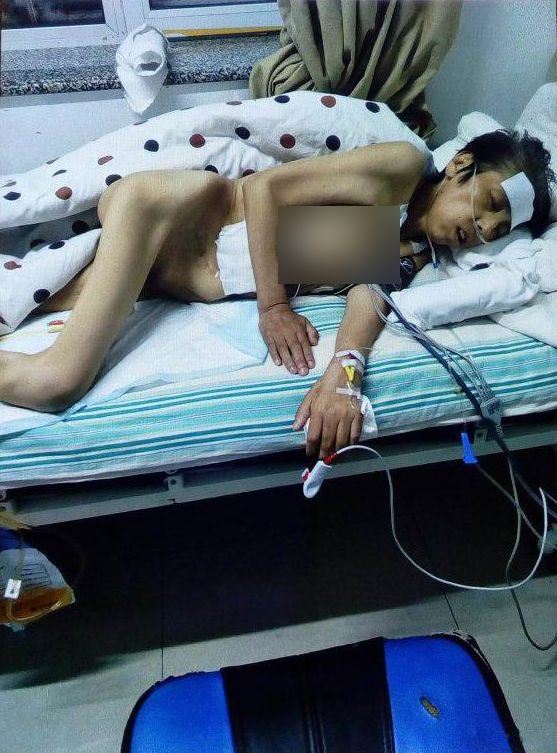 八年的冤狱迫害,李秀芹精神和肉体上都遭受到了极大的摧残,在监狱肝脓肿手术的刀口严重发炎,不得不再次切开排脓消炎,排出的浓液都是灰绿色的,量有医用塑料盒两盒多,浓液里夹杂着缝刀口时的缝线。医生说是体能太差不能吸收的原因造成的。