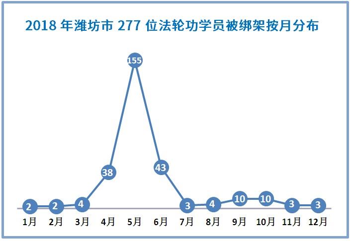 ![]() 图1:2018年潍坊市277位法轮功学员被绑架按月分布 |
