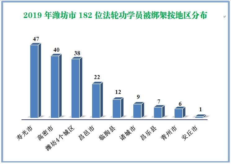 ![]() 图4:2019年潍坊市182位法轮功学员被绑架按地区分布 |