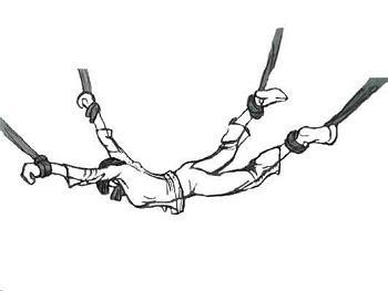 ◎抻刑中还有一种更为残忍的形式叫“五马分尸”。据长春学员李知秀回忆说:“闫璐璐和孙永静把我的手拉到头的上方绑到暖气管子上,手和管子之间没有一点空隙,绑的死死的,身体躺在床上而脚要绑到另一张靠门口那张床上,手、身子、脚呈大字形绑上,看我不妥协,就找来四个人把门口那张床用力往出拉,两张床原来是挨着的,这样把两张床之间抻出大约二三十公分的距离,身体悬空,被抻的直直的,这种抻刑迫害导致我流血不止、一直处于昏迷状态。”