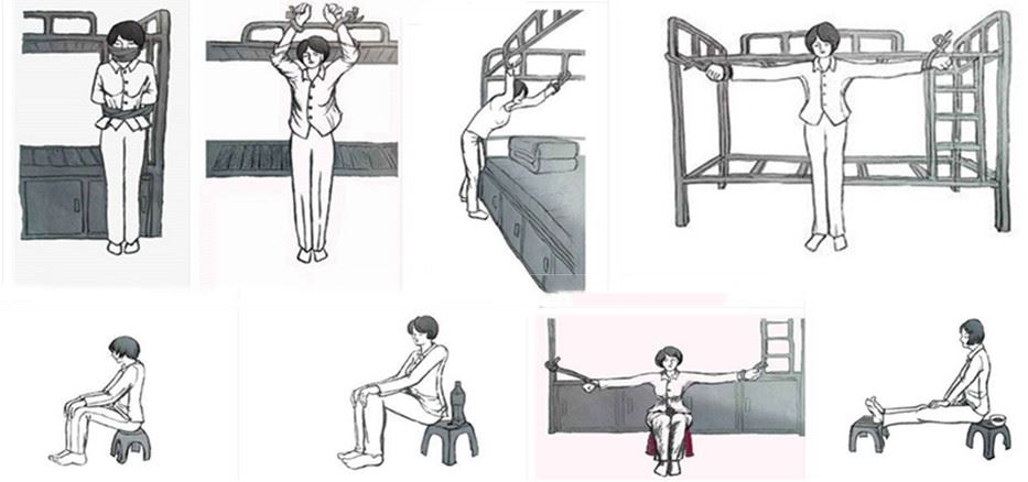 ◎长春市法轮功学员郭文帅自述受害经历:“她们先用线衣线裤分别从我两个胳膊腋窝处掏过来,把两个肩膀绑紧。然后将我两个胳膊向后背到背部,使我两小臂在背部交叉重叠起来端至肩胛骨处,用线衣线裤捆紧,一点也动弹不得。然后几个人将我整个身体举起来,使我双脚离开地面一定高度,再将刚才捆绑我肩膀的线衣线裤另一端牢牢地绑在上铺床的护栏杆上,使身体完全悬空着吊起来。最后再把我悬空的双腿呈八字形劈开,两脚分别用毛巾等绑在下铺床下方的橫栏上。身体被捆绑悬空吊起来后,呈飞机形状,因此称为“开飞机”。这种吊刑,吊一会儿,人就会痛得汗流浃背,死去活来。而且身体被捆绑得结实,一动也动不了,持续的疼痛得不到任何缓解,整个人的精神都崩溃了。吊完之后,我的两个胳膊和双手就彻底伤筋了。下来时,身体都虚脱了,两个胳膊就象面条一样没了筋骨,失去了知觉。两个胳膊和双手青紫肿胀,肩部、颈部疼痛难忍,两侧肩膀和腋窝处隔着两层衣服仍然被勒破了皮,血水渗出来。嘴角和嘴唇都被毛巾撑裂了,嘴里也咬破了,脸颊也肿了,双腿酸软无力,脚也肿了起来。这以后,两个胳膊和双手就如同残废了一般,我每天就象失去了双臂的残疾人一样度日。吃饭、洗漱、大小便、穿衣,必须由她人护理进行。”