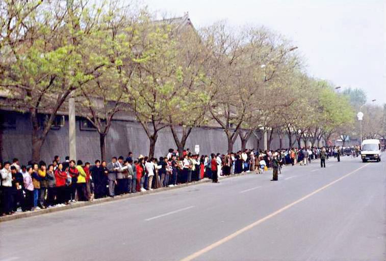![]() 图4:一九九九年四月二十五日,逾万法轮功学员在北京国务院信访办外要求政府释放在天津被抓的法轮功学员,以真善忍的胸怀开启了中国历史上和平理性反迫害的先例。 |