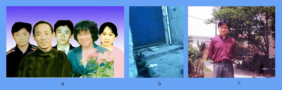 ![]() a、从左至右:彭敏(小儿)、彭惟圣(丈夫)、彭亮(大儿)、李莹秀、彭燕(女儿),b、武昌螃蟹甲紫金村90号:李莹秀的家门,c、被中共虐杀的彭敏 |