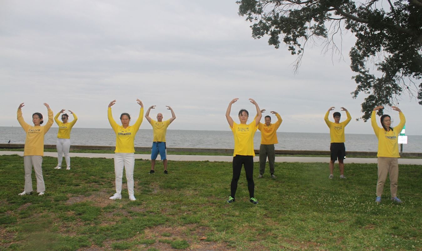 自一九九六年师尊在美国讲法后,在佛罗里达州,几位学员自发的组织了几个炼功点。二十多年来,炼功点已经遍布佛州的主要城市,有缘者纷纷走入修炼的行列。在世界同庆第21届世界法轮大法日,及师尊69岁华诞来临之际,佛州法轮功学员在各地炼功,介绍功法,向伟大的师尊表达他们的感恩。