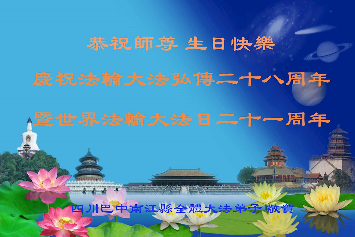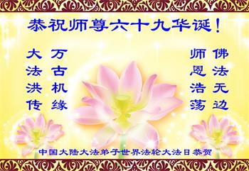 ![]() 图1:庆祝第二十一届世界法轮大法日,华盛顿DC全体大法弟子恭祝师尊生日快乐! |