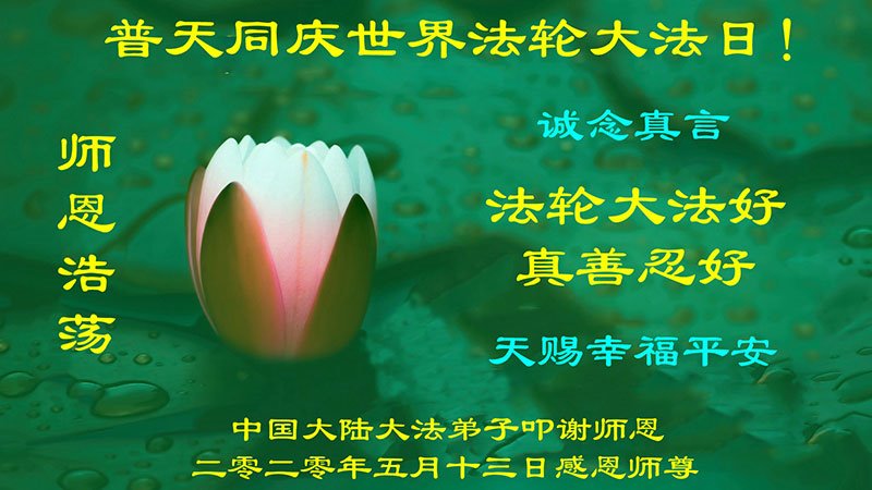 【明慧网二零二零年五月十四日】今年五月十三日是“第二十一届世界法轮大法日”,大法弘传二十八周年,暨大法李洪志师父六十九华诞。二零二零年五月十日,美国首都华盛顿及周边地区的法轮功学员通过网络庆祝法轮大法日,一些学员回忆了李洪志师父一九九六年以来在美国和世界各地传法的珍贵故事,也交流了学法修心的心得体会。