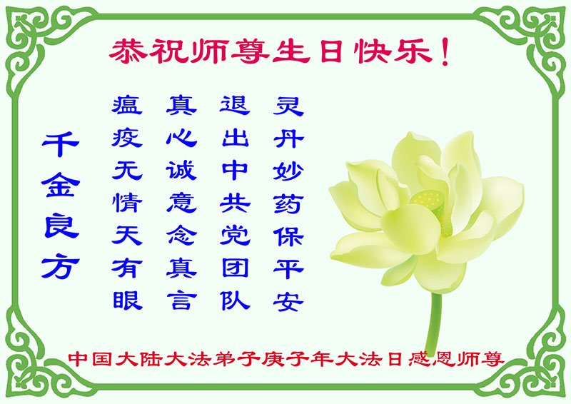 他们在各自的环境中践行着法轮大法“真、善、忍”原则,获得身心健康和道德升华,并把修炼的美好带给身边的人。回首二十多年的修炼路,学员们对李洪志师父的感恩无以言表,唯有“感谢师恩,感谢师恩,感谢师恩”。