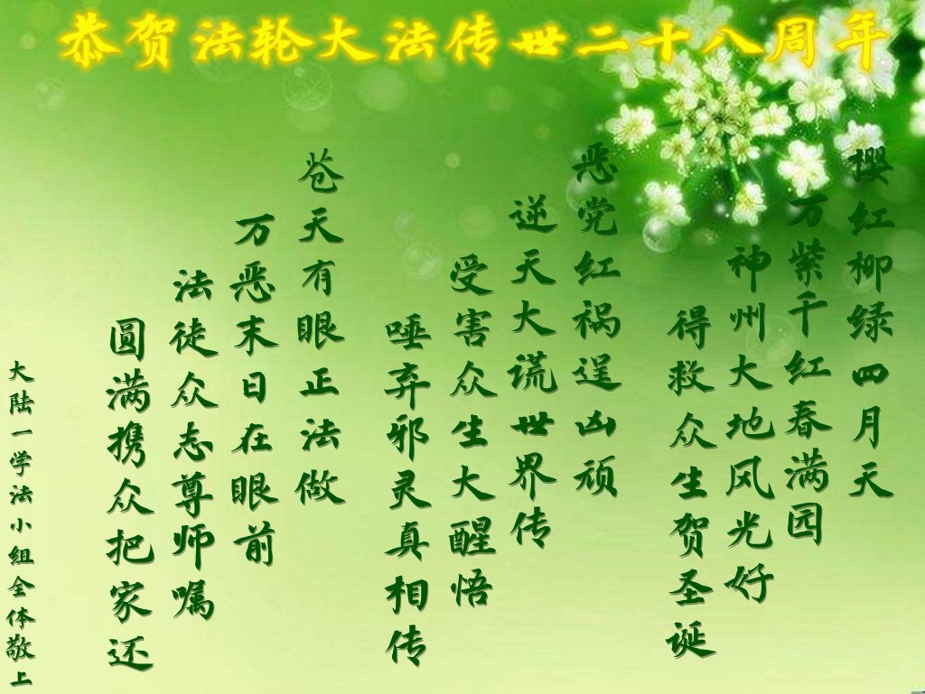 “法轮大法让我神性复苏,第一次明白了生命的意义。没有语言能表达我对李洪志师父的感恩。”