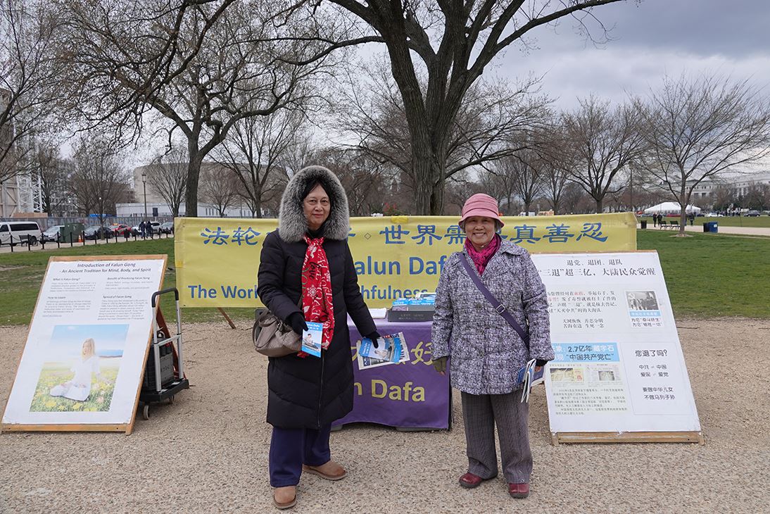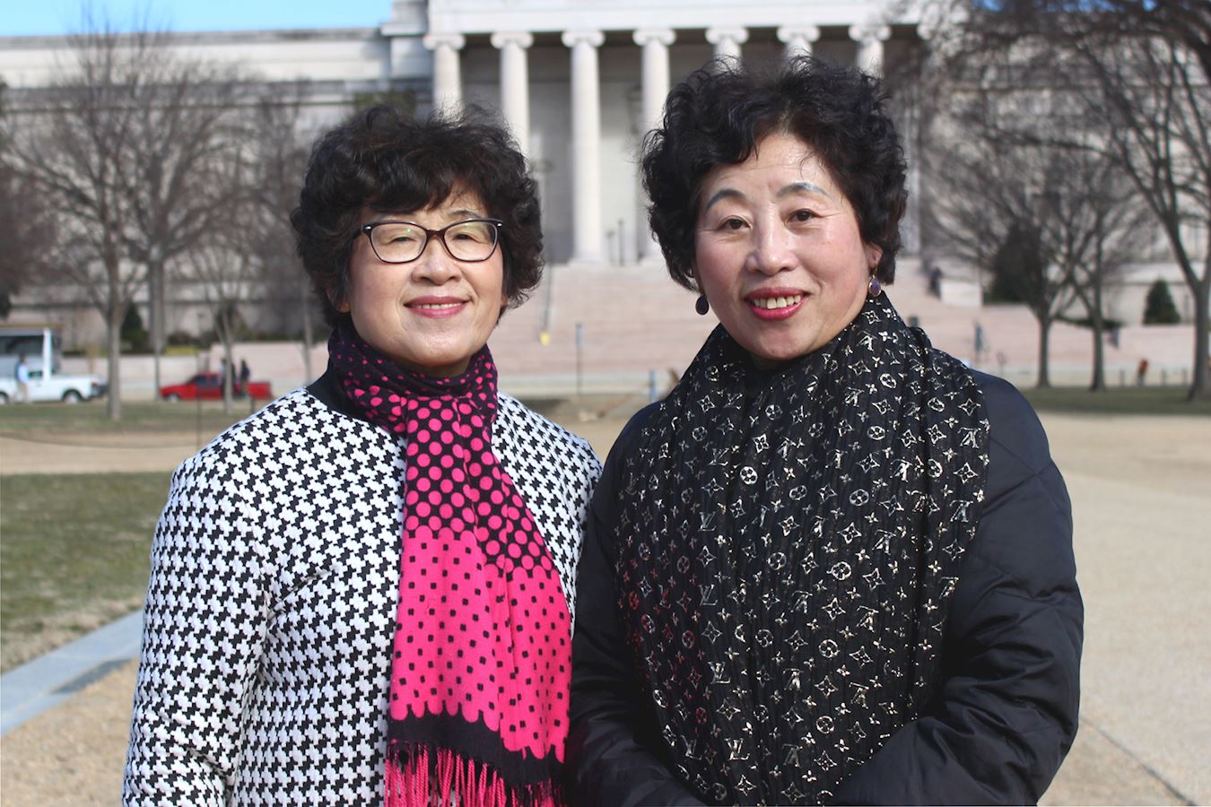 ![]() 图5:法轮功学员吴正英(左)和吴凤英(右)姐妹。吴凤英是一位退休牙医,在华盛顿DC景点坚持讲真相十几年了。 |