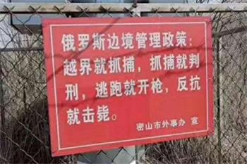 ![]() 图:黑龙江边境城市密山市的官方警示牌。(网路截图) |