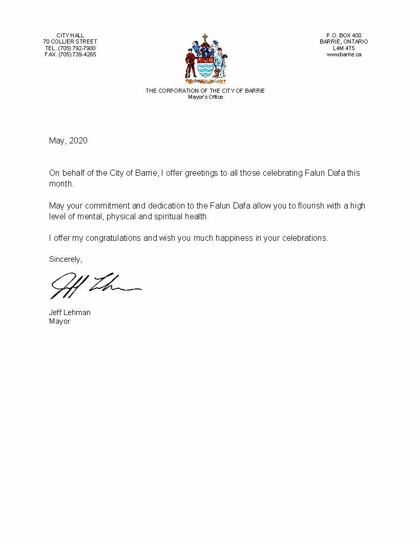发来贺信或电子邮件的还有:米尔顿市(Milton)市长戈德·克兰兹(Gord Krantz);多伦多市议员乔什·马特洛(Josh Matlow);新斯科舍省(Nova Scotia)哈利法克斯市(Halifax)市长迈克·萨维奇(Mike Savage);哈密尔顿市市议员杰森·法尔(Jason Farr);尼亚加拉瀑布市市议员韦恩·坎贝尔(Wayne Campbell)和巴里市(Barrie)市长杰夫·雷曼(Jeff Lehman)。市长们分别在信中感谢了法轮功学员提供的义工服务,真善忍的普世价值给社会各阶层认识带来的福祉,表示要推崇法轮大法的弘扬。