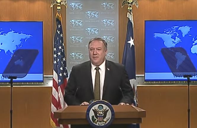 ![]() 图:二零二零年六月十日,美国国务院发布2019年度《国际宗教自由报告》。美国国务卿蓬佩奥(Mike Pompeo)在当天举行的新闻发布会上发表讲话。 |