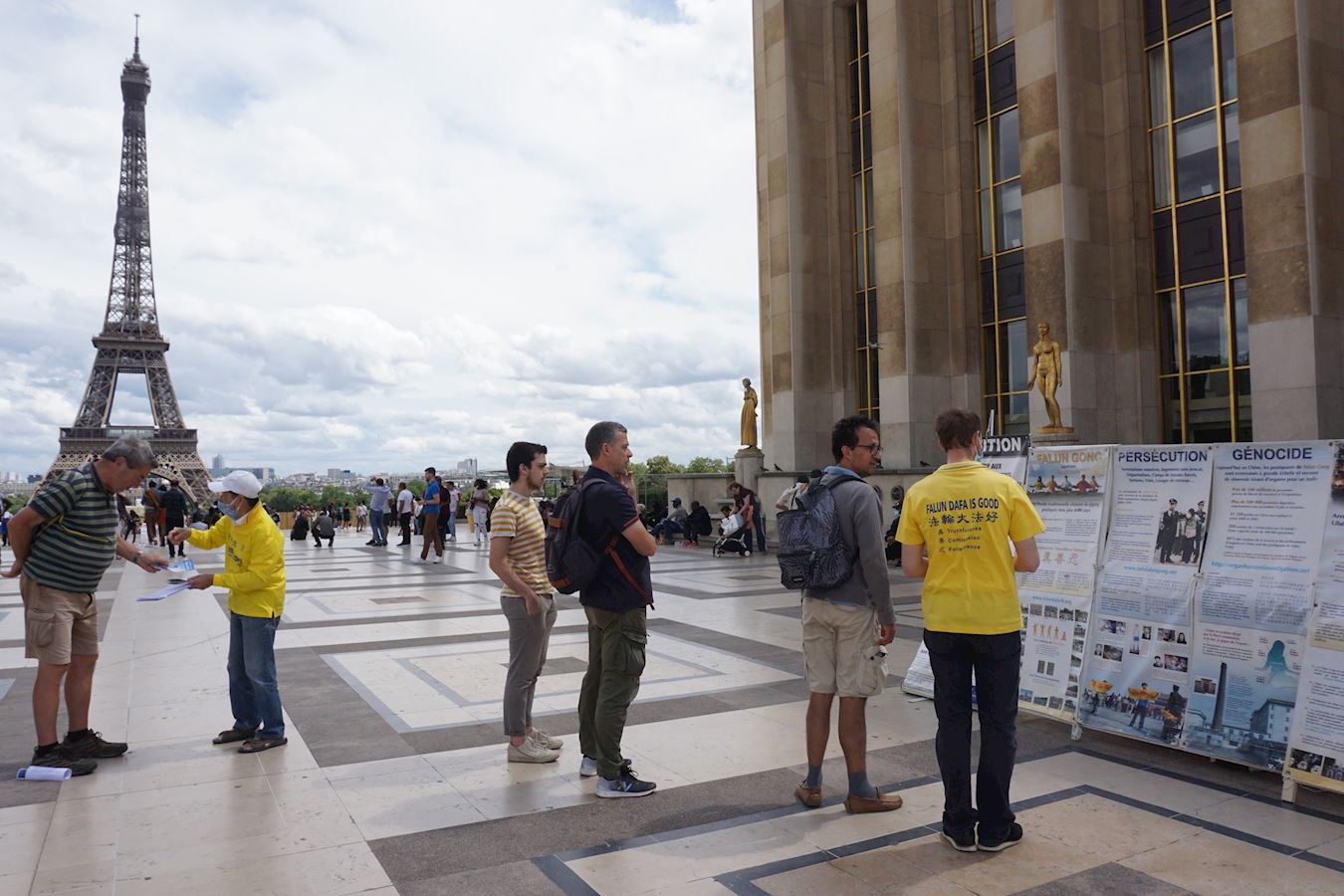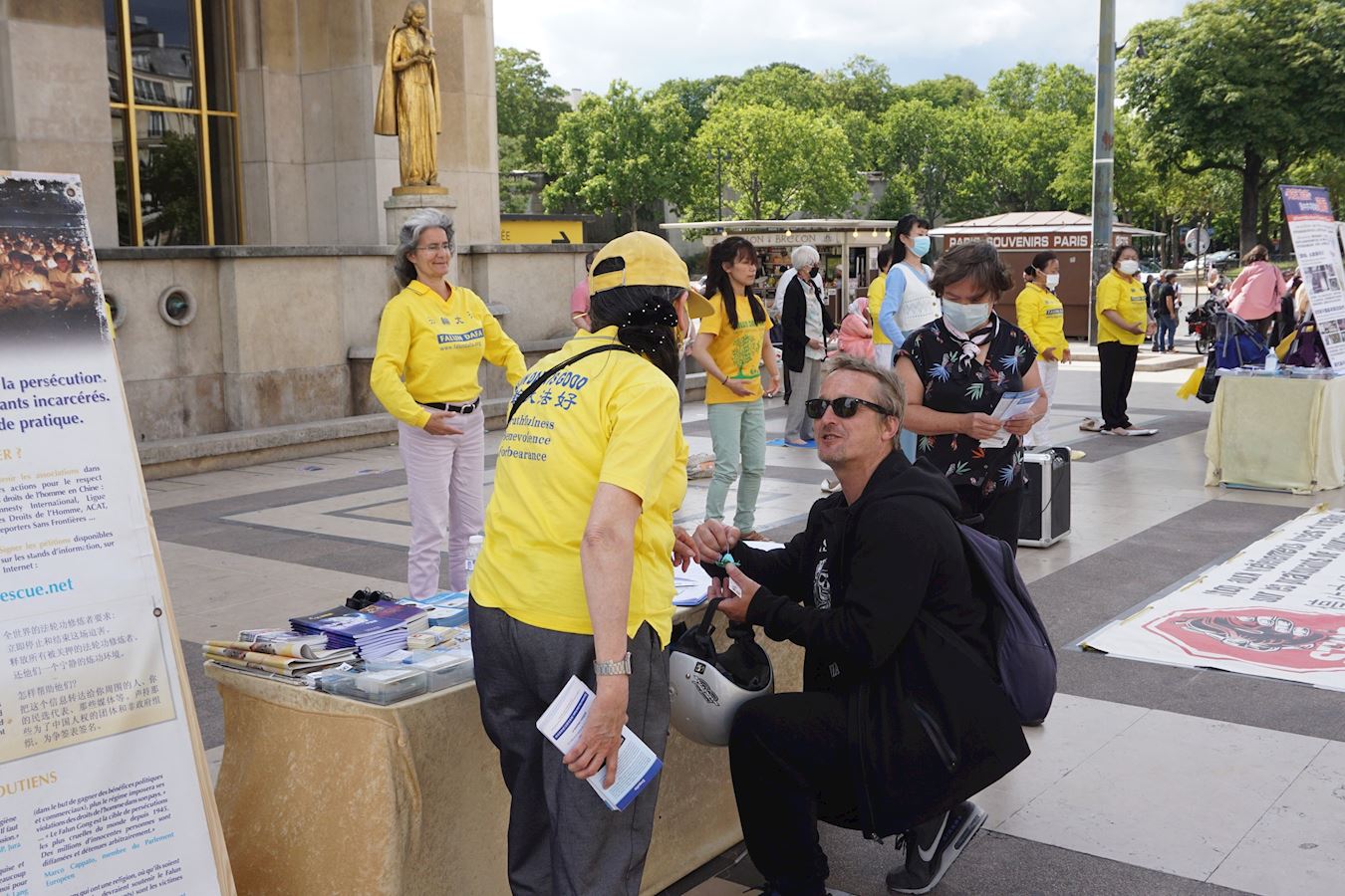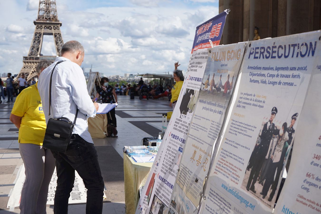 法布里·里奥(Fabrice Riou )在一家商店工作,他也在征签表上签了字。他说:“中国人没有一点自由,让人很悲哀。没有宗教、信仰的自由这不正常。正常情况下,人们可以做自己想要做的事情,正常的生活,自己做选择,有自己的爱好。”他还说:“财富固然好,自由更是我们想要的。所有的共产党在全世界都是最有害的。”