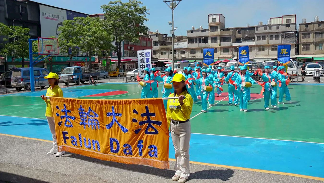 在烈日下,法轮功学员分别在金门金城及金湖举办七二零反迫害游行活动。精神抖擞的腰鼓队、身穿印有“法轮大法好”字样的黄T恤的炼功队伍,以及手持各种展板及横幅的游行队伍穿梭于金门的大街小巷,将法轮大法的美好和中共迫害法轮功的真相传递到各个角落。